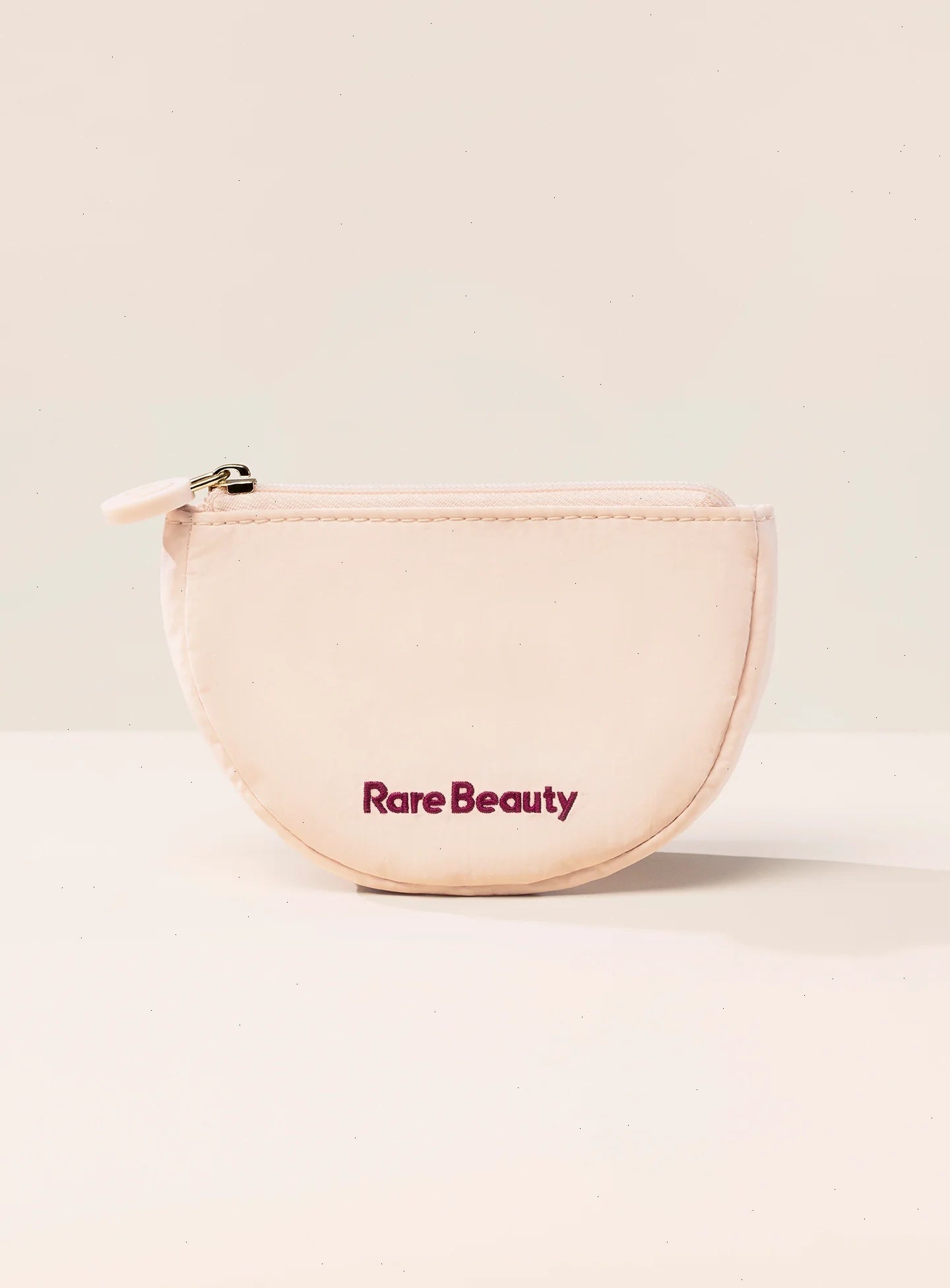 Features a silicone zipper pull with a debossed Rare Beauty monogram.